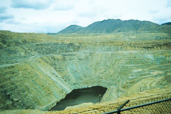 The Berkeley Pit is the carved-out remains of "the richest hill on earth," a massive open-pit copper mine from which approximately one billion tons of rock were removed and processed to capture the rich copper from its ore.